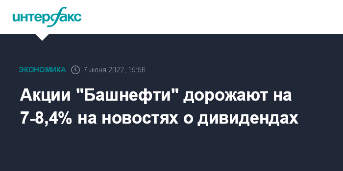 Москва. 7 июня. INTERFAX.RU - Акции "Башнефти" к вечеру вторника дорожают до уровней конца мая на новостях о рекомендациях совета директоров по дивидендам за 2021 год.
