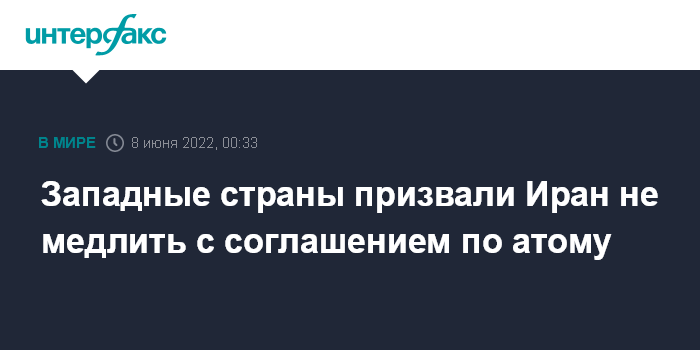 Москва. 8 июня. INTERFAX.RU - Франция, Германия и Великобритания призвали Иран как можно скорее заключить сделку, направленную на восстановление Совместного всеобъемлющего плана действий (СВПД), и отказаться от наращивания своего ядерного потенциала.