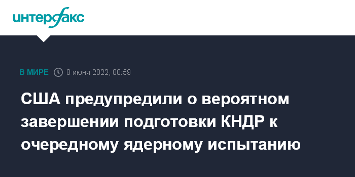 6 июня генсек МАГАТЭ Рафаэль Гросси заявил, что агентство фиксирует активность на испытательном полигоне ядерного оружия Пунгери в КНДР и считает это признаком возможной подготовки испытания ядерного оружия. Он также сообщил, что по данным агентства, продолжаются работы на северокорейском ядерном объекте в Йонбене.