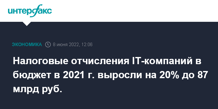 Налоговые отчисления IT-компаний в бюджет в 2021 г. выросли на 20% до 87 млрд руб.