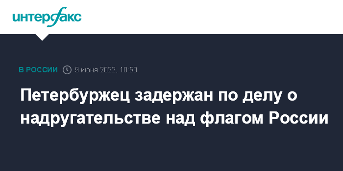 Москва. 9 июня. INTERFAX.RU - Уголовное дело о надругательстве над российским флагом возбуждено в отношении жителя Петербурга, сообщает в четверг пресс-служба регионального главка МВД.