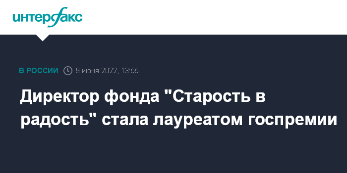 Директор фонда "Старость в радость" стала лауреатом госпремии