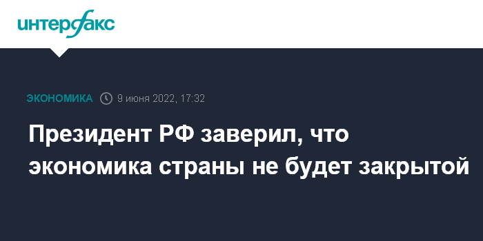 "У нас не будет закрытой экономики. У нас ее не было и не будет. Если кто-то пытается нас в чем-то ограничить, то они ограничивают сами себя", - сказал Путин в четверг на встрече с молодыми предпринимателями в преддверии Петербургского международного экономического форума.