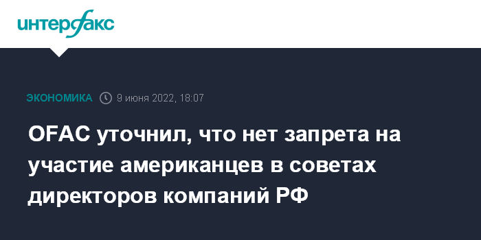 OFAC уточнил, что нет запрета на участие американцев в советах директоров компаний РФ