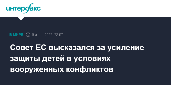 "Совет указывает на необходимость защиты детей, столкнувшихся с вооруженными конфликтами и их последствиями, в частности, защиты их от вербовки со стороны вооруженных сил, от торговли людьми, незаконного усыновления, сексуальной эксплуатации и разлучения с семьями", - говорится в коммюнике, опубликованном в Брюсселе.