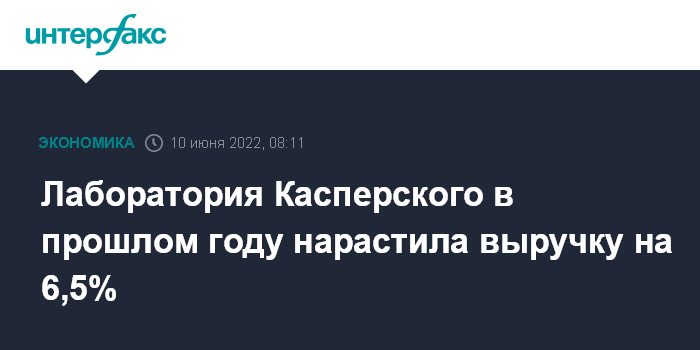 Москва. 10 июня. INTERFAX.RU - Совокупная выручка "Лаборатории Касперского" (неаудированная, по МСФО) по итогам 2021 года составила $752 млн, что на 6,5% превышает показатель предыдущего года, сообщила компания.