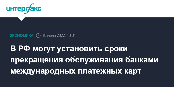 В РФ могут установить сроки прекращения обслуживания банками международных платежных карт