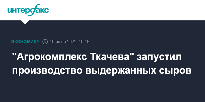 Москва. 10 июня. INTERFAX.RU - "Агрокомплекс им. Н.И.Ткачева" в июне запустил на своем сыродельном комбинате "Сыры Кубани" производство выдержанных сыров, сообщили "Интерфаксу" в холдинге.