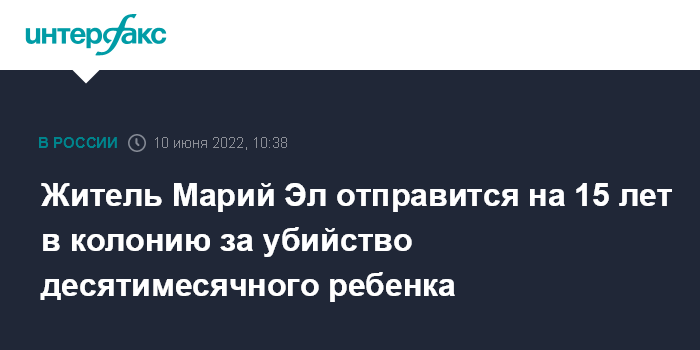 Житель Марий Эл отправится на 15 лет в колонию за убийство десятимесячного ребенка