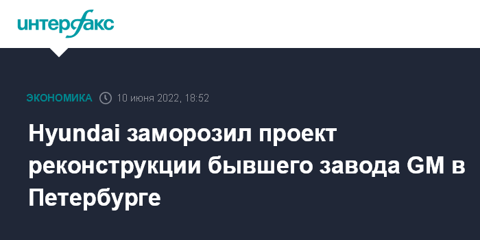 Москва. 10 июня. INTERFAX.RU - Автоконцерн Hyundai поставил на паузу проект реконструкции бывшего завода General Motors в Петербурге. Об этом пишет газета "Деловой Петербург" со ссылкой на источники.