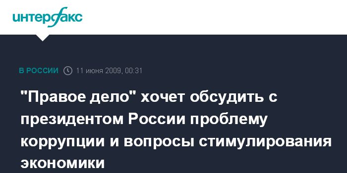 "Правое дело" хочет обсудить с президентом России проблему коррупции и вопросы стимулирования экономики