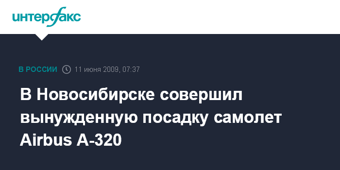 Москва. 11 июня. INTERFAX.RU - Самолет Airbus А-320 авиакомпании "Аэрофлот" совершил вынужденную посадку в новосибирском аэропорту "Толмачево" в четверг.