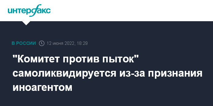 Москва. 12 июня. INTERFAX.RU - Незарегистрированное правозащитное движение "Комитет против пыток" (признан в РФ незарегистрированным общественным объединением - иноагентом) самоликвидируется, заявил в воскресенье председатель организации Сергей Бабинец.