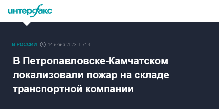 Москва. 14 июня. INTERFAX.RU - В Петропавловске-Камчатском пожарные локализовали пожар на складе одной из транспортных компаний, сообщает во вторник главное управление МЧС России по Камчатскому краю.