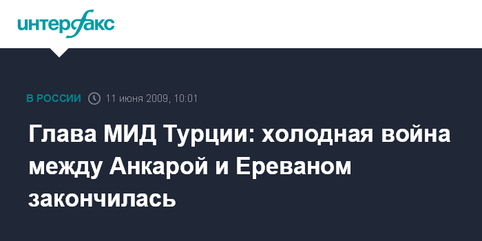 Москва. 11 июня. INTERFAX.RU - Завершился период холодной войны в отношениях Турции и Армении, в Анкаре ждут с визитом президента Сержа Саргсяна, заявил министр иностранных дел Турции Ахмет Давутоглу.