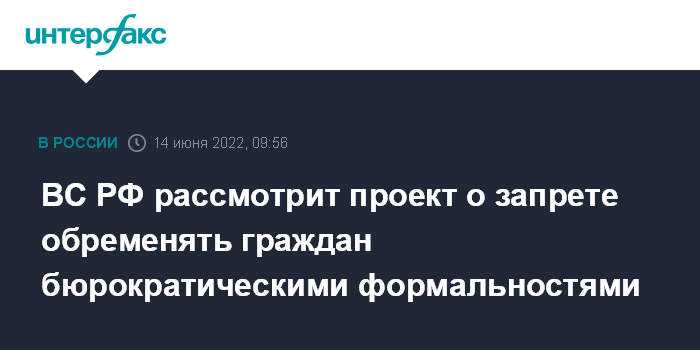 ВС РФ рассмотрит проект о запрете обременять граждан бюрократическими формальностями