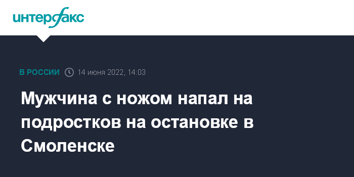 Москва. 14 июня. INTERFAX.RU - Следователи в Смоленске проводят проверку информации о нападении мужчины с ножом на подростков, сообщает СУ СКР по региону.