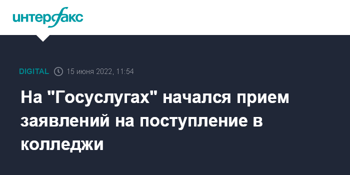 Москва. 15 июня. INTERFAX.RU - На портале государственных услуг открылся прием заявлений на поступление в колледжи, сообщает официальный телеграм-канал Министерства просвещения РФ "Большая перемена" в среду.