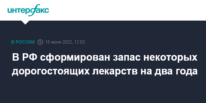 Москва. 15 июня. INTERFAX.RU - Запас и закупки по некоторым дорогостоящим редким лекарственным препаратам в России сформированы до двух лет, сообщил первый заместитель министра здравоохранения РФ Виктор Фисенко.