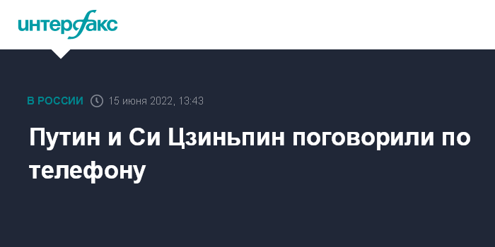 Москва. 15 июня. INTERFAX.RU - Президент РФ Владимир Путин и председатель КНР Си Цзиньпин в среду провели телефонные переговоры, сообщило агентство Bloomberg со ссылкой на китайское государственное телевидение.