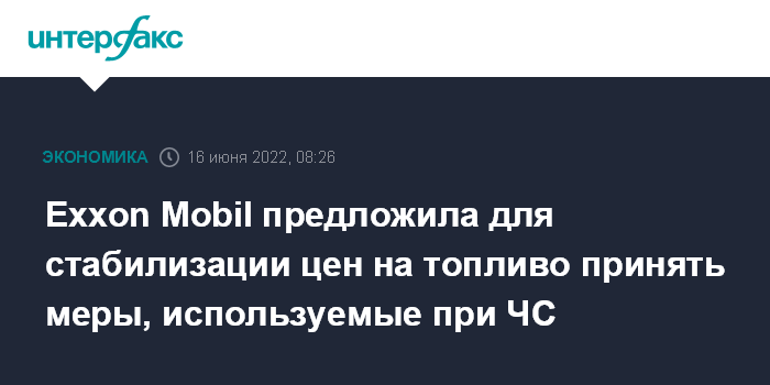 Exxon Mobil предложила для стабилизации цен на топливо принять меры, используемые при ЧС