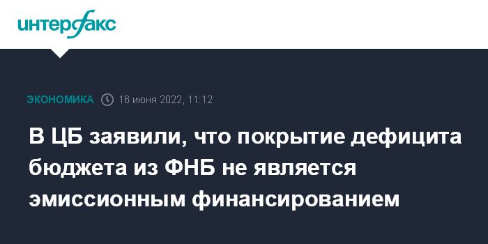 Москва. 16 июня. INTERFAX.RU - Использование средств Фонда национального благосостояния (ФНБ) на покрытие дефицита бюджета РФ - по сути, возврат ранее накопленных денег в экономику, а не эмиссия новых, сообщила председатель Банка России Эльвира Набиуллина.