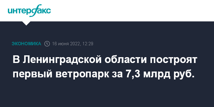 Соответствующее соглашение заключили генеральный директор ООО "Ветропарк" Игорь Брызгунов и губернатор региона Александр Дрозденко в рамках Петербургского международного экономического форума (ПМЭФ-2022) в четверг, передал корреспондент "Интерфакса".