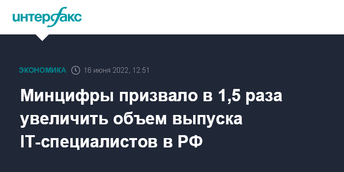 Москва. 16 июня. INTERFAX.RU - В России необходимо в 1,5 раза увеличить объем выпуска IT-специалистов, заявил глава Минцифры РФ Максут Шадаев.
