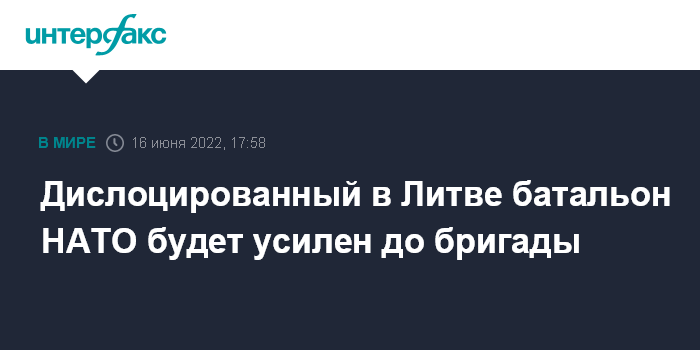 Москва. 16 июня. INTERFAX.RU - Североатлантический альянс договорился о создании союзной бригады для Литвы, но окончательная формулировка будет оглашена на саммите НАТО в Мадриде. Об этом сообщил министр обороны Литвы Арвидас Анушаускас.