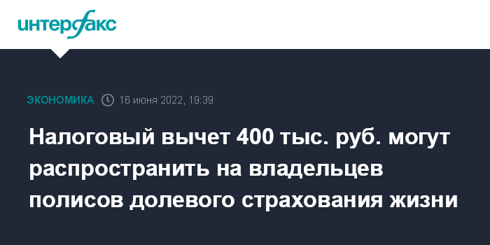 Налоговый вычет 400 тыс. руб. могут распространить на владельцев полисов долевого страхования жизни