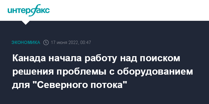 Москва. 17 июня. INTERFAX.RU - Оттава ведет переговоры с Берлином по вопросу оборудования компании Siemens для газопровода "Северный поток", которое проходит техобслуживание на заводе в Канаде, сообщают западные СМИ.