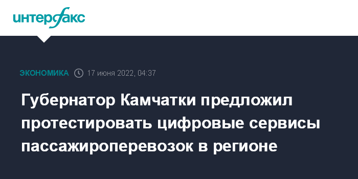 Москва. 17 июня. INTERFAX.RU - Губернатор Камчатского края Владимир Солодов предложил сделать регион пилотным для тестирования цифровых сервисов в сфере пассажирских перевозок.