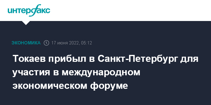 Москва. 17 июня. INTERFAX.RU - Президент Казахстана Касым-Жомарт Токаев прибыл в Санкт-Петербург для участия в международном экономическом форуме, сообщила пресс-служба главы государства.
