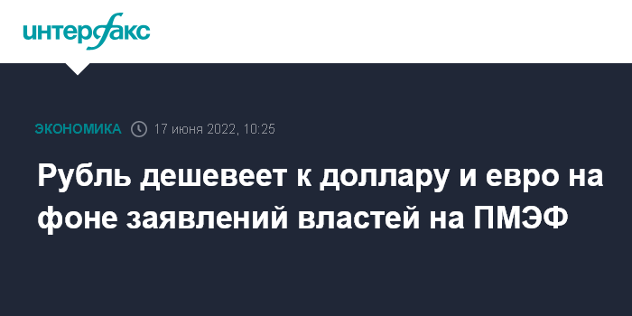 Как отмечают эксперты "Интерфакс-ЦЭА", рубль дешевеет к доллару и евро на старте торгов на новостях с ПМЭФ-2022. Банки РФ смогут вводить комиссии по валютным вкладам депозитам, открытым до вступления в силу поправок в закон, сообщил "Интерфаксу" источник, знакомый с текстом законопроекта.