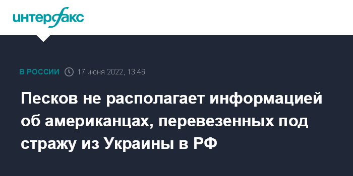 Песков не располагает информацией об американцах, перевезенных под стражу из Украины в РФ