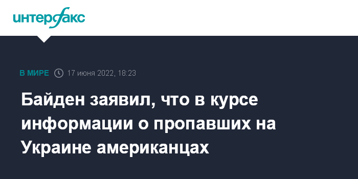 Москва. 17 июня. INTERFAX.RU - Президент США Джо Байден заявил, что его проинформировали о сообщениях по поводу пропавших на Украине американских гражданах.