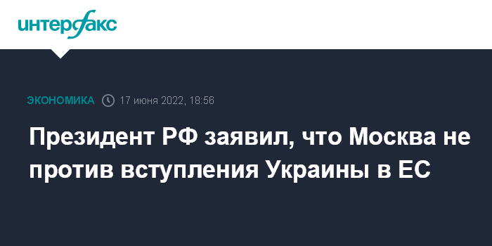 Президент РФ заявил, что Москва не против вступления Украины в ЕС