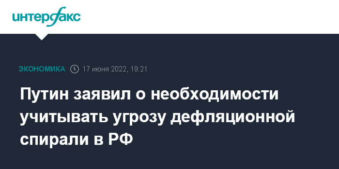 Москва. 17 июня. INTERFAX.RU - Рискам дефляционной спирали надо уделять внимание, заявил президент РФ Владимир Путин.