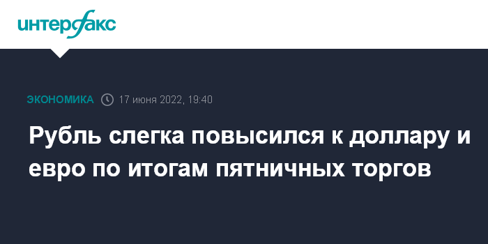 Как отмечают эксперты "Интерфакс-ЦЭА", рубль завершил пятницу небольшим повышением к доллару и евро, несмотря на обвальное падение цен на нефть. Поддержку ему оказали заявления представителей российских властей на Петербургском международном экономическом форуме (ПМЭФ-2022). В частности, президент РФ Владимир Путин, выступая в пятницу на пленарном заседании форума, подчеркнул, что Россия не допустит раскручивания инфляционной спирали, цель по этому показателю в 4% сохраняется.