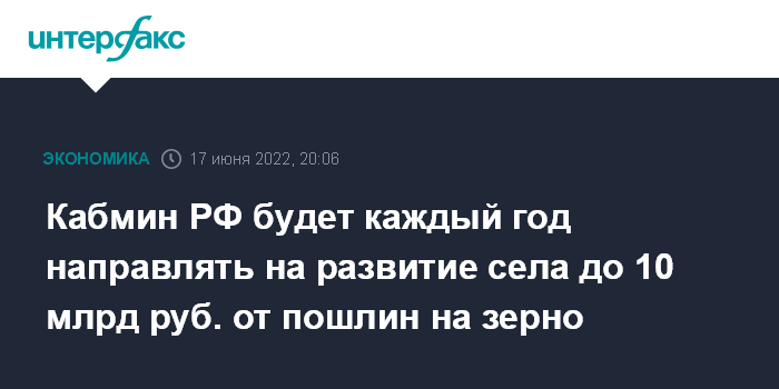 Кабмин РФ будет каждый год направлять на развитие села до 10 млрд руб. от пошлин на зерно