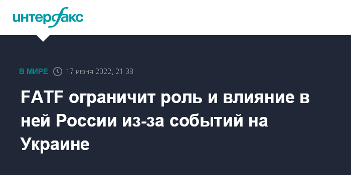 Однако, по мнению FATF, действия России на Украине противоречат ее основным принципам, направленным на обеспечение безопасности, защищенности и целостности мировой финансовой системы, поэтому принято решение ограничить роль и влияние Москвы.