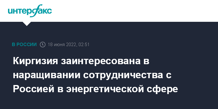 Киргизия заинтересована в наращивании сотрудничества с Россией в энергетической сфере