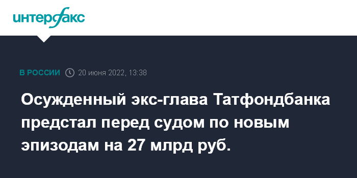 Осужденный экс-глава Татфондбанка предстал перед судом по новым эпизодам на 27 млрд руб.