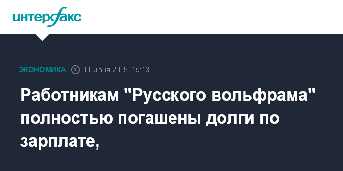 Работникам "Русского вольфрама" полностью погашены долги по зарплате,
