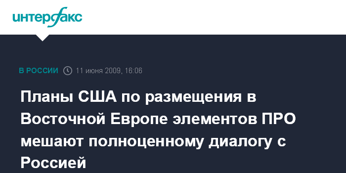 Планы США по размещения в Восточной Европе элементов ПРО мешают полноценному диалогу с Россией