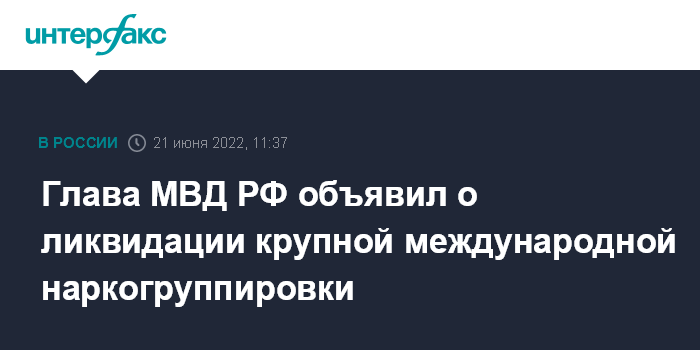 Москва. 21 июня. INTERFAX.RU - Глава МВД РФ Владимир Колокольцев сообщил о совместной операции России и партнеров по СНГ по пресечению деятельности крупной международной наркогруппировки.