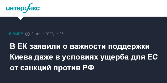 В ЕК заявили о важности поддержки Киева даже в условиях ущерба для ЕС от санкций против РФ
