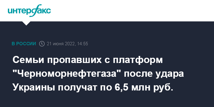 Семьи пропавших с платформ "Черноморнефтегаза" после удара Украины получат по 6,5 млн руб.