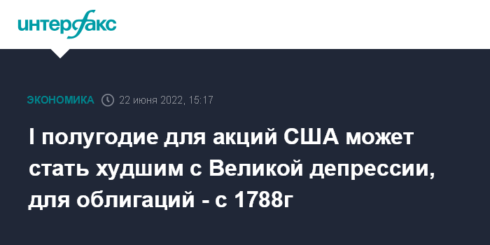 I полугодие для акций США может стать худшим с Великой депрессии, для облигаций - с 1788г