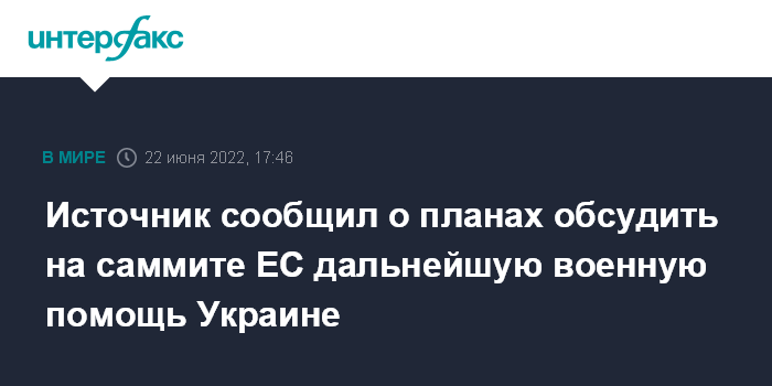Источник сообщил о планах обсудить на саммите ЕС дальнейшую военную помощь Украине
